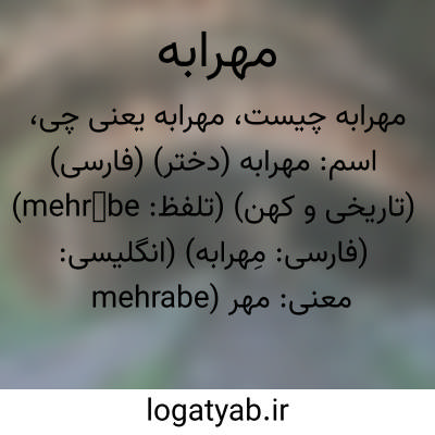 اسم: مهرابه (دختر) (فارسی) (تاریخی و کهن) (تلفظ: mehrābe) (فارسی: مِهرابه) (انگلیسی: mehrabe)