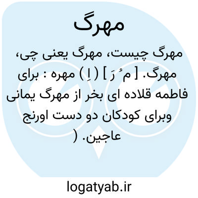 مهرگ. [ م ُ رَ ] ( اِ ) مهره: برای فاطمه قلاده ای بخر از مهرگ یمانی وبرای کودکان دو دست اورنج عاجین. ( تفسیر ابوالفتوح رازی ج 5 ص 58 ). بار و میوه او بر هم نهاده باشد بمانند مهرگ برپیوسته. ( تفسیر ابوالفتوح رازی ج 5 ص 228 ).