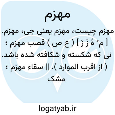مهزم. [ م ُ هََ زْ زَ ] ( ع ص ) قصب مهزم؛ نی که شکسته و شکافته شده باشد. ( از اقرب الموارد ). || سقاء مهزم؛ مشک که با خشکی برهم تا خورده باشد. ( از اقرب الموارد ). متهزم. و رجوع به متهزم شود.