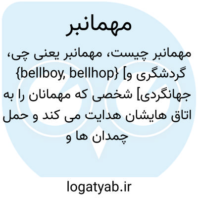 {bellboy, bellhop} [گردشگری و جهانگردی] شخصی که مهمانان را به اتاق هایشان هدایت می کند و حمل چمدان ها و انتقال پیام های آنها را بر عهده دارد