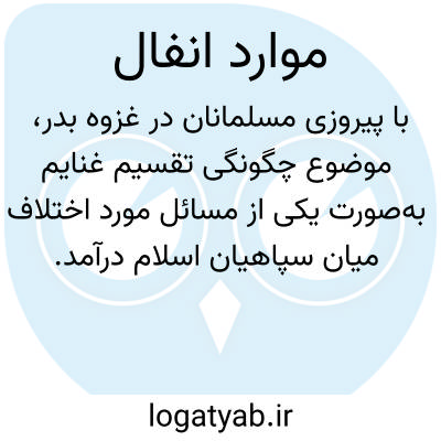 با پیروزی مسلمانان در غزوه بدر، موضوع چگونگی تقسیم غنایم بهصورت یکی از مسائل مورد اختلاف میان سپاهیان اسلام درآمد. این اختلاف موجب شد تا گروهی از مسلمانان نزد پیامبر اکرم(ص) رفته و در این خصوص سؤال کنند. در پاسخ به این پرسشها و برای رفع اختلافات پیشآمده، نخستین آیه از سوره انفال نازل گردید که میفرماید: «یَسْأَلُونَکَ عَنِ الْأَنْفَالِ قُلِ الْأَنْفَالُ لِلَّهِ وَالرَّسُولِ فَاتَّقُوا اللَّهَ وَأَصْلِحُوا ذَاتَ بَینِکُمْ». این آیه شریفه، قانون کلّی انفال را تشریع نمود و تکلیف مالکیت این اموال را مشخص کرد.