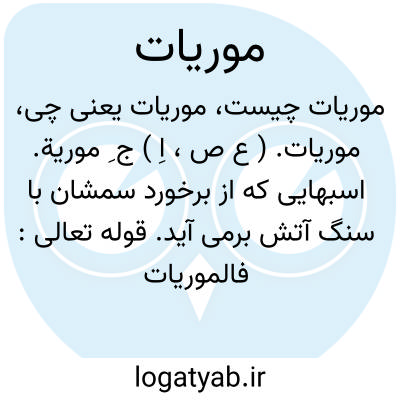 موریات. ( ع ص، اِ ) ج ِ موریة. اسبهایی که از برخورد سمشان با سنگ آتش برمی آید. قوله تعالی: فالموریات قدحاً. ( از ناظم الاطباء ). و رجوع به موریة شود.