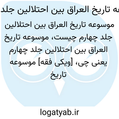 [ویکی فقه] موسوعه تاریخ العراق بین احتلالین جلد چهارم (کتاب). کتاب موسوعة تاریخ العراق بین احتلالین نوشته عباس عزّاوى محامى (متوفاى ۱۳۵۰)، پژوهشى است درباره حوادث و وقایع سیاسى عراق از زمان اشغال آن از سوى مغولان تا پایان حاکمیّت عثمانى ها و اشغال آن توسط انگلیس.