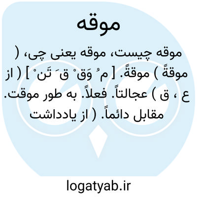 ( موقةً ) موقةً. [ م ُ وَق ْ ق َ تَن ْ ] ( از ع، ق ) عجالتاً. فعلاً. به طور موقت. مقابل دائماً. ( از یادداشت مؤلف ). و رجوع به موقت و موقتاً شود.