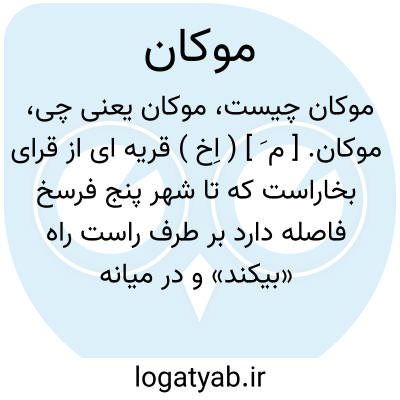 موکان. [ م َ ] ( اِخ ) قریه ای از قرای بخاراست که تا شهر پنج فرسخ فاصله دارد بر طرف راست راه «بیکند» و در میانه آن و میانه راه سه فرسخ مسافت است. ( انجمن آرا ) ( آنندراج ).