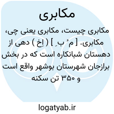 مکابری. [ م ُ ب ِ ] ( اِخ ) دهی از دهستان شبانکاره است که در بخش برازجان شهرستان بوشهر واقع است و 350 تن سکنه دارد. ( از فرهنگ جغرافیایی ایران، ج 7 ).