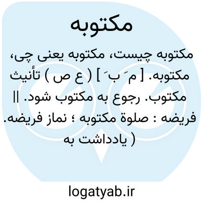 مکتوبه. [ م َ ب َ ] ( ع ص ) تأنیث مکتوب. رجوع به مکتوب شود. || فریضه: صلوة مکتوبه؛ نماز فریضه. ( یادداشت به خط مرحوم دهخدا ): و مراد به «کُتِب َ» فرض است... در «کتب علیکم القصاص » و برای این نمازهای فریضه را مکتوبه خوانند... ( تفسیر ابوالفتوح، ج 1 ص 272 ). چون وقت اداء مکتوبه درآمد و دعوت «حی علی الصلوة» به سمع مبارکش رسید... ( المضاف الی بدایع الازمان ص 26 ).
