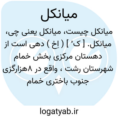 میانکل. [ ک ُ ] ( اِخ ) دهی است از دهستان مرکزی بخش خمام شهرستان رشت، واقع در 8هزارگزی جنوب باختری خمام با 230 تن سکنه. آب آن ازرودخانه سفیدرود و راه آن مالرو است. ( از فرهنگ جغرافیائی ایران ج 2 ).