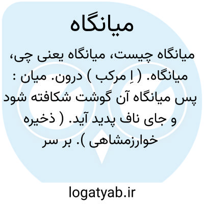 میانگاه. ( اِ مرکب ) درون. میان: پس میانگاه آن گوشت شکافته شود و جای ناف پدید آید. ( ذخیره خوارزمشاهی ). بر سر آن دکه سایه ها ساخته و در میان گاه آن گنبدی عظیم برآورده. ( فارسنامه ابن بلخی ص 138 ). || قلب. قلب لشکر. مرکز لشکر. قلب سپاه. ( یادداشت لغت نامه ):