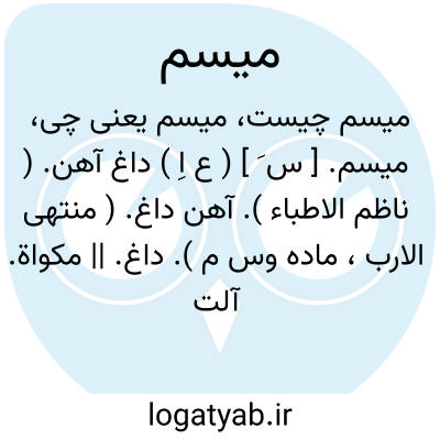 میسم. [ س َ ] ( ع اِ ) داغ آهن. ( ناظم الاطباء ). آهن داغ. ( منتهی الارب، ماده وس م ). داغ. || مکواة. آلت داغ. آهن که بدان داغ کنند. آنچه بدان داغ کنند. ( یادداشت مؤلف ). آنچه بدان اسب و جز آن را داغ کنند. ( یادداشت مؤلف ) ( از اقرب الموارد ) ( از متن اللغة ). آهن داغ.( آنندراج ). آهن داغ. ج، مواسم،میاسم. ( مهذب الاسماء ). || ( اِمص ) خوبی و زیبایی و جمال، گویند امراءة ذات میسم، ای ذات جمال. ج، میاسم ( علی اللفظ ) و مواسم ( علی الاصل ). ( منتهی الارب ). اثر زیبایی و خوبی. ( از اقرب الموارد ) ( از متن اللغة ). خوبی و زیبایی. ( آنندراج ). نیکویی. ( مهذب الاسماء ). || ( اِ ) علامت. ( منتهی الارب ). علامت و نشان. ( ناظم الاطباء ). || ( ص ) علامت دار و نشان دار. ( از متن اللغة ) ( ناظم الاطباء ). || رجل میسم؛ مردی که به خود علامت و نشانی قرار داده که بدان شناخته شود. ( ناظم الاطباء ). رجوع به میس و تحفه و مخزن الادویه شود.