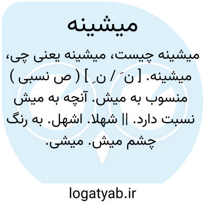 میشینه. [ ن َ / ن ِ ] ( ص نسبی ) منسوب به میش. آنچه به میش نسبت دارد. || شهلا. اشهل. به رنگ چشم میش. میشی. میشین. ( از یادداشت مؤلف ): چشمی میشینه،چشمی شهلاء. ( مهذب الاسماء ). || ( اِ ) از نوع میش. از جنس میش، ضأن. عاطفه. مقابل بزینه به معنی از نوع بز. ( از یادداشت مؤلف ). در گناباد خراسان به نوعی از گوسپند اطلاق می شود که دارای پشم است، مقابل بزینه. ( یادداشت پروین گنابادی ). || گله میش. ( ناظم الاطباء ). گله گوسفن-د. ( آنن-دراج ).