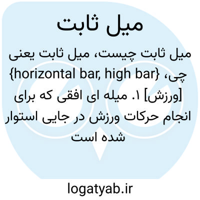 {horizontal bar, high bar} [ورزش] 1. میله ای افقی که برای انجام حرکات ورزش در جایی استوار شده است و نمونۀ استاندارد آن یکی از اسباب های چم ورزی مرکب از میله ای به طول 4/2 متر و قطر 28 میلی متر است که بر فراز پایه ای در فاصلۀ 5/2 متری از سطح/کف زمین قرار می گیرد 2. ماده ای در م...