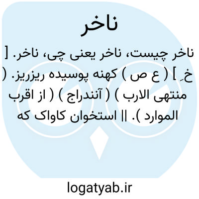 ناخر. [ خ ِ ] ( ع ص ) کهنه پوسیده ریزریز. ( منتهی الارب ) ( آنندراج ) ( از اقرب الموارد ). || استخوان کاواک که به وزیدن باد آواز آید از وی. ( منتهی الارب ) ( آنندراج ). استخوان پوسیده. ( مهذب الاسماء ). قیل الذی تدخل فیه الریح ثم تخرج منه و لها نخیر. ( اقرب الموارد ). || خوک حمله کننده. ( ناظم الاطباء ) ( آنندراج ). الخنزیر الضاری. ( اقرب الموارد ). ج، نُخُران. || ما بالدار ناخر؛ احد. ( مهذب الاسماء ) ( منتهی الارب ) ( ناظم الاطباء ) ( اقرب الموارد ).