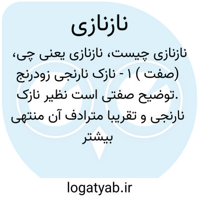 (صفت ) ۱ - نازک نارنجی زودرنج.توضیح صفتی است نظیر نازک نارنجی و تقریبا مترادف آن منتهی بیشتر برای زنان خاصه زنانی که ناز و غمزه دارند و خود را می پرورند و دست بسیاه و سفید نمی زنند بکارمیرود. ۲ - بچه بامزه ودوست داشتنی: [ ما بچه های ناز نازی یواش یواش میریم بازی... ]