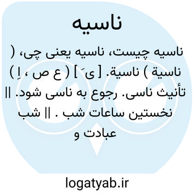 ( ناسیة ) ناسیة. [ ی َ ] ( ع ص، اِ ) تأنیث ناسی. رجوع به ناسی شود. || نخستین ساعات شب. || شب عبادت و ریاضت. || آنکه در شب جهت عبادت و پرستش برخیزد و شب زنده داری می کند. ( ناظم الاطباء ).