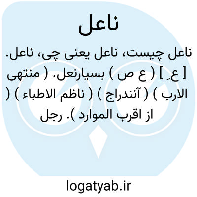 ناعل. [ ع ِ ] ( ع ص ) بسیارنعل. ( منتهی الارب ) ( آنندراج ) ( ناظم الاطباء ) ( از اقرب الموارد ). رجل ناعل؛ ذونعل. و آن مانند لابن و ناصر است. ( از اقرب الموارد ). || حافر ناعل؛ سم درشت. ( منتهی الارب ) ( آنندراج ). سم درشت و سخت. ( ناظم الاطباء ). صلب. ( اقرب الموارد ). القدم و الحافر الناعل؛ صلب. ( از معجم متن اللغة ). || ( اِ ) گورخر. ( منتهی الارب ) ( آنندراج ) ( ناظم الاطباء ). حمارالوحش. ( اقرب الموارد ) ( معجم متن اللغة ). گورخر، به دلیل صلابت سمش ناعل گویند. ( از اقرب الموارد ) ( منتهی الارب ).