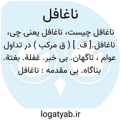 ناغافل.[ ف ِ ] ( ق مرکب ) در تداول عوام، ناگهان. بی خبر. غفلة. بغتة. بناگاه. بی مقدمه: ناغافل به سراغ من آمد.