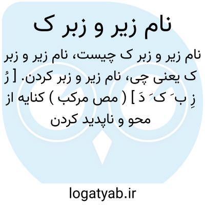 نام زیر و زبر کردن. [ رُ زِ ب َ ک َ دَ ] ( مص مرکب ) کنایه از محو و ناپدید کردن نام. ( بهار عجم ) ( از آنندراج ):