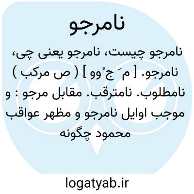 لغت نامه دهخدا نامرجو. [ م َ ج ُوو ] ( ص مرکب ) نامطلوب. نامترقب. مقابل مرجو: و موجب اوایل نامرجو و مظهر عواقب محمود چگونه است ؟ ( سندبادنامه ص 282 ).