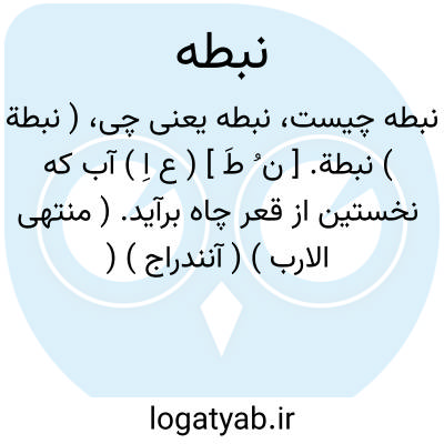 ( نبطة ) نبطة. [ ن ُ طَ ] ( ع اِ ) آب که نخستین از قعر چاه برآید. ( منتهی الارب ) ( آنندراج ) ( ناظم الاطباء ). اولین آبی که از چاه برآید. ( از اقرب الموارد ) ( از المنجد ). نَبَط. رجوع به نبط شود. || سپیدی بغل و شکم اسب. ( منتهی الارب ) ( آنندراج ) ( ناظم الاطباء ). سپیدی در شکم اسب و هر جنبنده ای. ( از معجم متن اللغة ). نبط. رجوع به نَبَط شود.