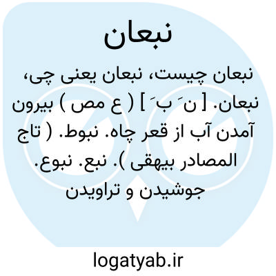 لغت نامه دهخدا نبعان. [ ن َ ب َ ] ( ع مص ) بیرون آمدن آب از قعر چاه. نبوط. ( تاج المصادر بیهقی ). نبع. نبوع. جوشیدن و تراویدن آب. رجوع به نبع شود.