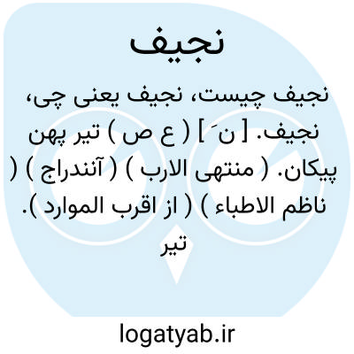 نجیف. [ ن َ ] ( ع ص ) تیر پهن پیکان. ( منتهی الارب ) ( آنندراج ) ( ناظم الاطباء ) ( از اقرب الموارد ). تیر پیکان فراخ. ( فرهنگ خطی ). || مشک کهنه.( منتهی الارب ) ( آنندراج ) ( ناظم الاطباء ). ج، نُجُف.