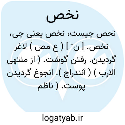 نخص. [ ن َ خ َ ] ( ع مص ) رفتن گوشت و لاغر گردیدن. ( منتهی الارب ) ( ناظم الاطباء ) ( آنندراج ) ( از اقرب الموارد ). گویند: نخص لحمه؛ ذهب. ( اقرب الموارد ).