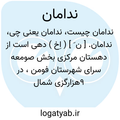 ندامان. [ ن َ ] ( اِخ ) دهی است از دهستان مرکزی بخش صومعه سرای شهرستان فومن، در 9هزارگزی شمال غربی صومعه سرا و 5هزارگزی مغرب کسما، در جلگه معتدل هوای مرطوبی واقع است و 776 تن سکنه دارد. آبش از پلنگ رود و سیاه رودخان، محصولش برنج و ابریشم و چای و توتون سیگار، شغل اهالی زراعت و کرایه کشی و زغال فروشی است. ( از فرهنگ جغرافیایی ایران ج 2 ).