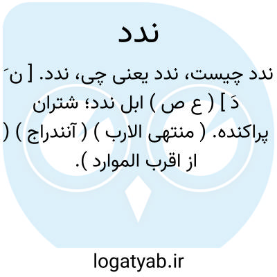 ندد. [ ن َ دَ ] ( ع ص ) ابل ندد؛ شتران پراکنده. ( منتهی الارب ) ( آنندراج ) ( از اقرب الموارد ).