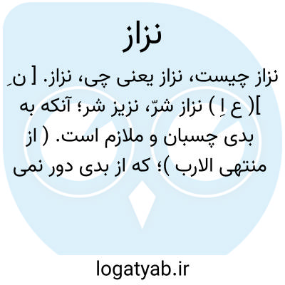 نزاز. [ ن ِ ]( ع اِ ) نزاز شرّ، نزیز شر؛ آنکه به بدی چسبان و ملازم است. ( از منتهی الارب )؛ که از بدی دور نمی شود. ( از المنجد ). لزاز. ( از اقرب الموارد ). || ( مص ) منازعة. منافسة. ( از اقرب الموارد ) ( از المنجد ).