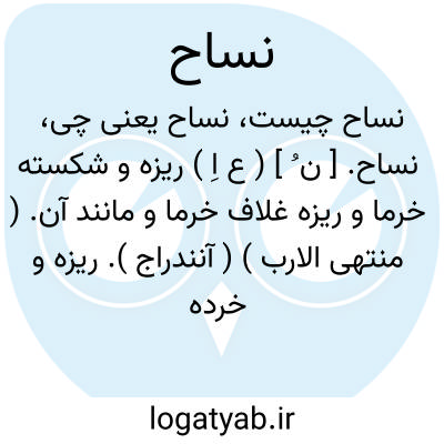 نساح. [ ن ُ ] ( ع اِ ) ریزه و شکسته خرما و ریزه غلاف خرما و مانند آن. ( منتهی الارب ) ( آنندراج ). ریزه و خرده خرما و پوست خرما که در ته خنور باقی ماند. ( ناظم الاطباء ) ( از اقرب الموارد ).