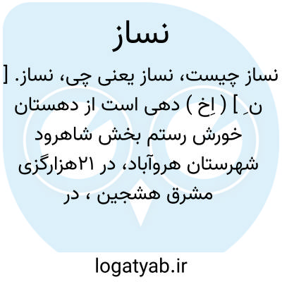 نساز. [ ن ِ ] ( اِخ ) دهی است از دهستان خورش رستم بخش شاهرود شهرستان هروآباد، در 21هزارگزی مشرق هشجین، در ناحیه کوهستانی معتدل هوائی واقع است و 547 تن سکنه دارد. آبش از سه رشته چشمه، محصولش غلات و میوه های سردرختی، شغل اهالی زراعت و گله داری و جاجیم بافی است. ( از فرهنگ جغرافیایی ایران ج 4 ).