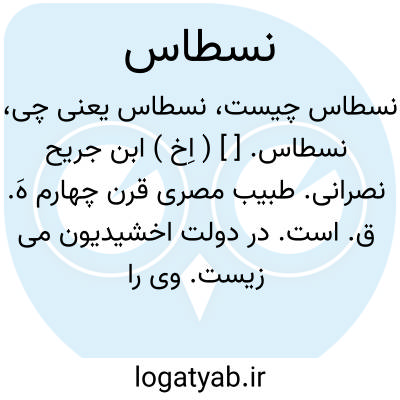 نسطاس. [ ] ( اِخ ) ابن جریح نصرانی. طبیب مصری قرن چهارم هَ. ق. است. در دولت اخشیدیون می زیست. وی را در موضوع بول تألیفی است. ( از معجم المؤلفین ج 13 ص 84 ).