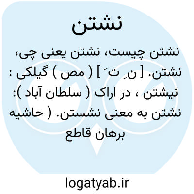 گیلکی: نیشتن. در اراک: نشتن. به معنی نشستن. مخفف نشستن. یا ماندن. اقامت کردن.