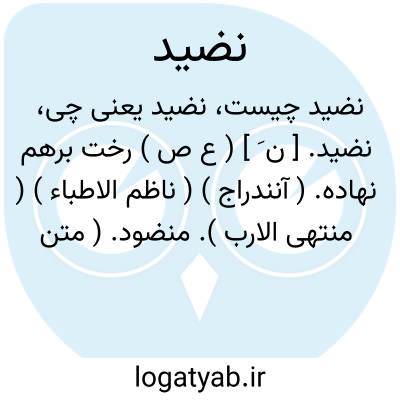 نضید. [ ن َ ] ( ع ص ) رخت برهم نهاده. ( آنندراج ) ( ناظم الاطباء ) ( منتهی الارب ). منضود. ( متن اللغة ) ( المنجد ). مُنَضَّد. ( المنجد ). || منضود.مردف. مرتب. منظم. ( از یادداشت مؤلف ):