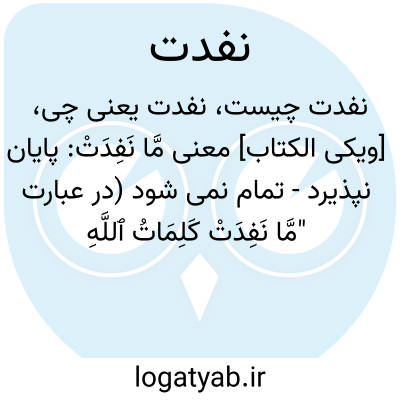 [ویکی الکتاب] معنی مَّا نَفِدَتْ: پایان نپذیرد - تمام نمی شود (در عبارت "مَّا نَفِدَتْ کَلِمَاتُ ﭐللَّهِ "چون به یک واقعیت حتمی اشاره کرده مضارع معنی شده است )