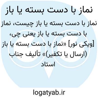 [ویکی نور] «نماز با دست بسته یا باز (ارسال یا تکفیر)» تألیف جناب استاد نجم الدین طبسی و ترجمه آقای محمد حسین شیرازی است که در موضوع عدم مشروعیت نماز با حالت دست بسته و بررسی دلایل شرعی این مسئله نگاشته شده است.
