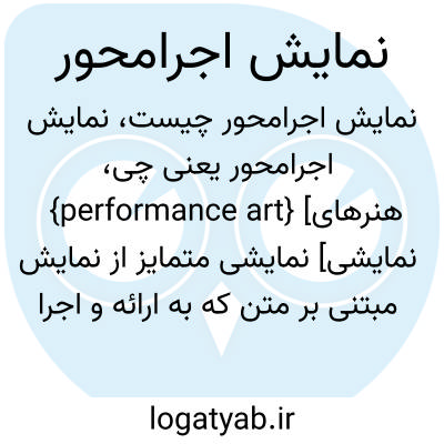 {performance art} [هنرهای نمایشی] نمایشی متمایز از نمایش مبتنی بر متن که به ارائه و اجرا بیش از بازنمایی گرایش دارد و از گونه های هنری دیگری چون فیلم و اسلاید و عکس و تصویر و موسیقی بهره می گیرد