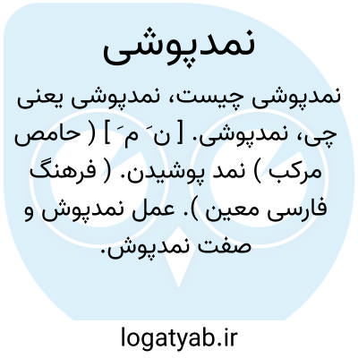 نمدپوشی. [ ن َ م َ ] ( حامص مرکب ) نمد پوشیدن. ( فرهنگ فارسی معین ). عمل نمدپوش و صفت نمدپوش. کنایه از درویشی و پشمینه پوشی و نیز کنایه از رندی و عیاری است. رجوع به نمدپوش شود.