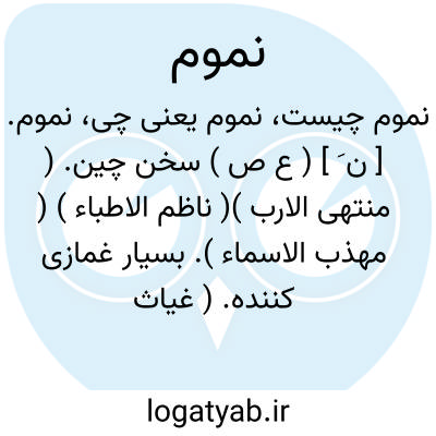 نموم. [ ن َ ] ( ع ص ) سخن چین. ( منتهی الارب )( ناظم الاطباء ) ( مهذب الاسماء ). بسیار غمازی کننده. ( غیاث اللغات ) ( آنندراج ). نمام. منم. ( متن اللغة ). نام. ( اقرب الموارد ). خبرکش. دوبه هم زن. ( یادداشت مؤلف ). || ورغلاننده و آراینده سخن را به دروغ. ( منتهی الارب ) ( ناظم الاطباء ). رجوع به معنی قبلی شود.