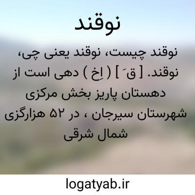 نوقند. [ ق َ ] ( اِخ ) دهی است از دهستان پاریز بخش مرکزی شهرستان سیرجان، در 52 هزارگزی شمال شرقی سعیدآباد سیرجان و بر سر راه نوک آباد به پاریز. در منطقه ای کوهستانی و سردسیر واقع است و 150 تن سکنه دارد. آبش از قنات، محصولش غلات و حبوبات، شغل مردمش زراعت است. ( از فرهنگ جغرافیائی ایران ج 8 ).