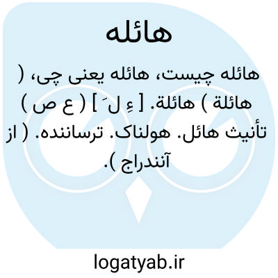 ( هائلة ) هائلة. [ ءِ ل َ ] ( ع ص ) تأنیث هائل. هولناک. ترساننده. ( از آنندراج ).
