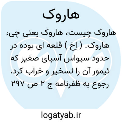 هاروک. ( اِخ ) قلعه ای بوده در حدود سیواس آسیای صغیر که تیمور آن را تسخیر و خراب کرد. رجوع به ظفرنامه ج 2 ص 297 شود.