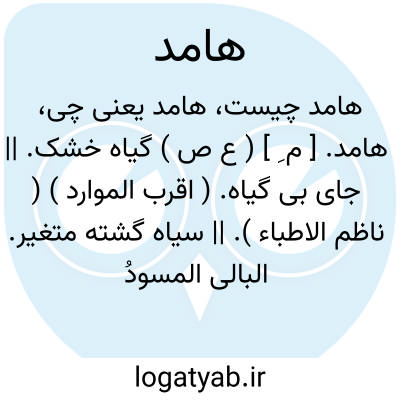 هامد. [ م ِ ] ( ع ص ) گیاه خشک. || جای بی گیاه. ( اقرب الموارد ) ( ناظم الاطباء ). || سیاه گشته متغیر. البالی المسودُ المتغیر من ثمرو شجر و غیرهما. ( ناظم الاطباء ) ( اقرب الموارد ) ( معجم متن اللغة ). || ثوب هامد؛ جامه ای که در صورت ظاهر بی عیب باشد، ولی چون دست بر وی زنند از بسیاری کهنگی از هم پاشیده شود. ( ناظم الاطباء ) ( المنجد ). || الرماد الهامد؛ البالی المتلبد بعضه علی بعض. ( اقرب الموارد ) ( معجم متن اللغه ). ج، هوامد.
