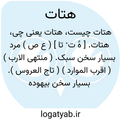 هتات. [ هََ ت ْ تا ] ( ع ص ) مرد بسیار سخن سبک. ( منتهی الارب ) ( اقرب الموارد ) ( تاج العروس ). بسیار سخن بیهوده گوی. مهذار. مهت. هتهات. ( معجم متن اللغة ). بسیار سخن گوی و حاضرکلام. ( ناظم الاطباء ). مرد بسیارگو و چست. ( منتخب اللغات ). مؤنث؛ هتاتة.