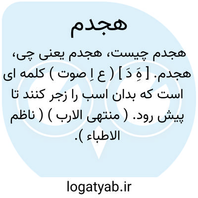هجدم. [ هَِ دَ ] ( ع اِ صوت ) کلمه ای است که بدان اسب را زجر کنند تا پیش رود. ( منتهی الارب ) ( ناظم الاطباء ). صوتی است که بدان اسب را برانند تا پیش رود. ( اقرب الموارد ). لغتی است در اجدم. ( از معجم متن اللغة ). گویند اول کسی که سوار بر اسب شد پسر آدم قاتل برادرش بود. وی اسب را به پیش راند و گفت هج الدم. بتدریج و بر اثر کثرت استعمال به صورت هجدم و اجدم تخفیف یافته است. ( از منتهی الارب ) ( از لسان العرب ).