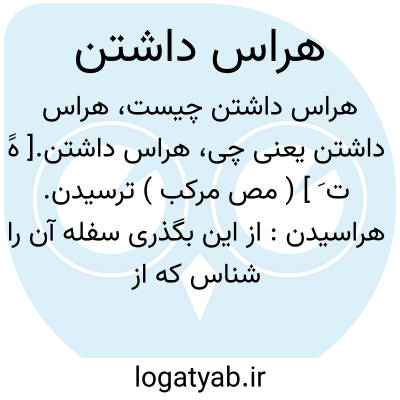 (مصدر ) ترسیدن هراس داشتن: (( چنین گفت مردحقایق شناس ازاین هم که گفتی نداریم هراس. ) ) (سعدی )