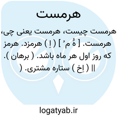 هرمست. [ هَُ م ُ ] ( اِ ) هرمزد. هرمز که روز اول هر ماه باشد. ( برهان ). || ( اِخ ) ستاره مشتری. ( برهان ). رجوع به هرمس و هُرمُز شود.
