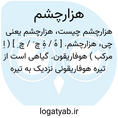 هزارچشم. [ هََ / هَِ چ َ / چ ِ ] ( اِ مرکب ) هوفاریقون. گیاهی است از تیره هوفاریقونی نزدیک به تیره پنیرکان که در برگ آن کیسه های اسانسی بسیار است و چون آن برگ را در برابر آفتاب گیرند مانند آن است که سوراخ بسیار دارد و به همین جهت آن را هزارچشم نامیده اند. ( گیاه شناسی گل گلاب ص 204 ).