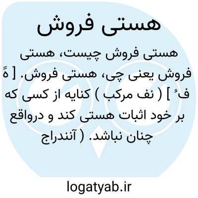 هستی فروش. [ هََ ف ُ ] ( نف مرکب ) کنایه از کسی که بر خود اثبات هستی کند و درواقع چنان نباشد. ( آنندراج ). آنکه اعتماد می کند بر درازی عمر و بر بقا. ( ناظم الاطباء ).